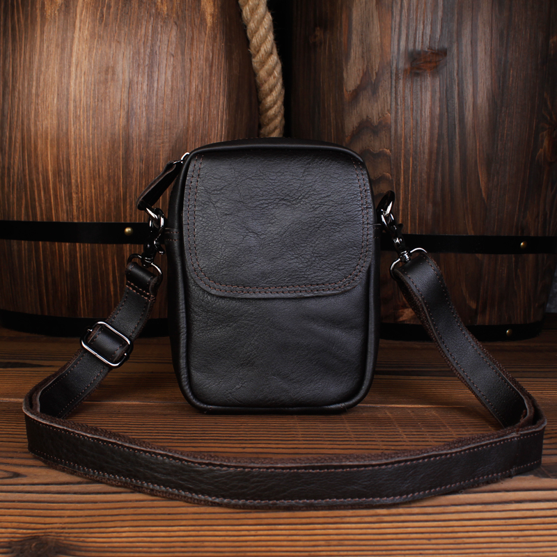 Men's mobile phone bag small satchel head layer cow leather multifunction wearing leather strap mobile phone pocket men's leather single shoulder inclined shoulder bag