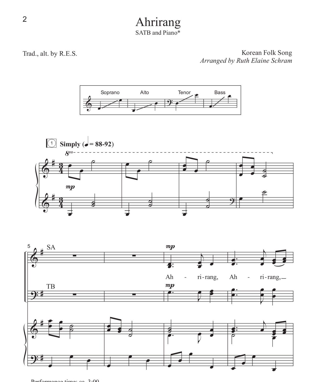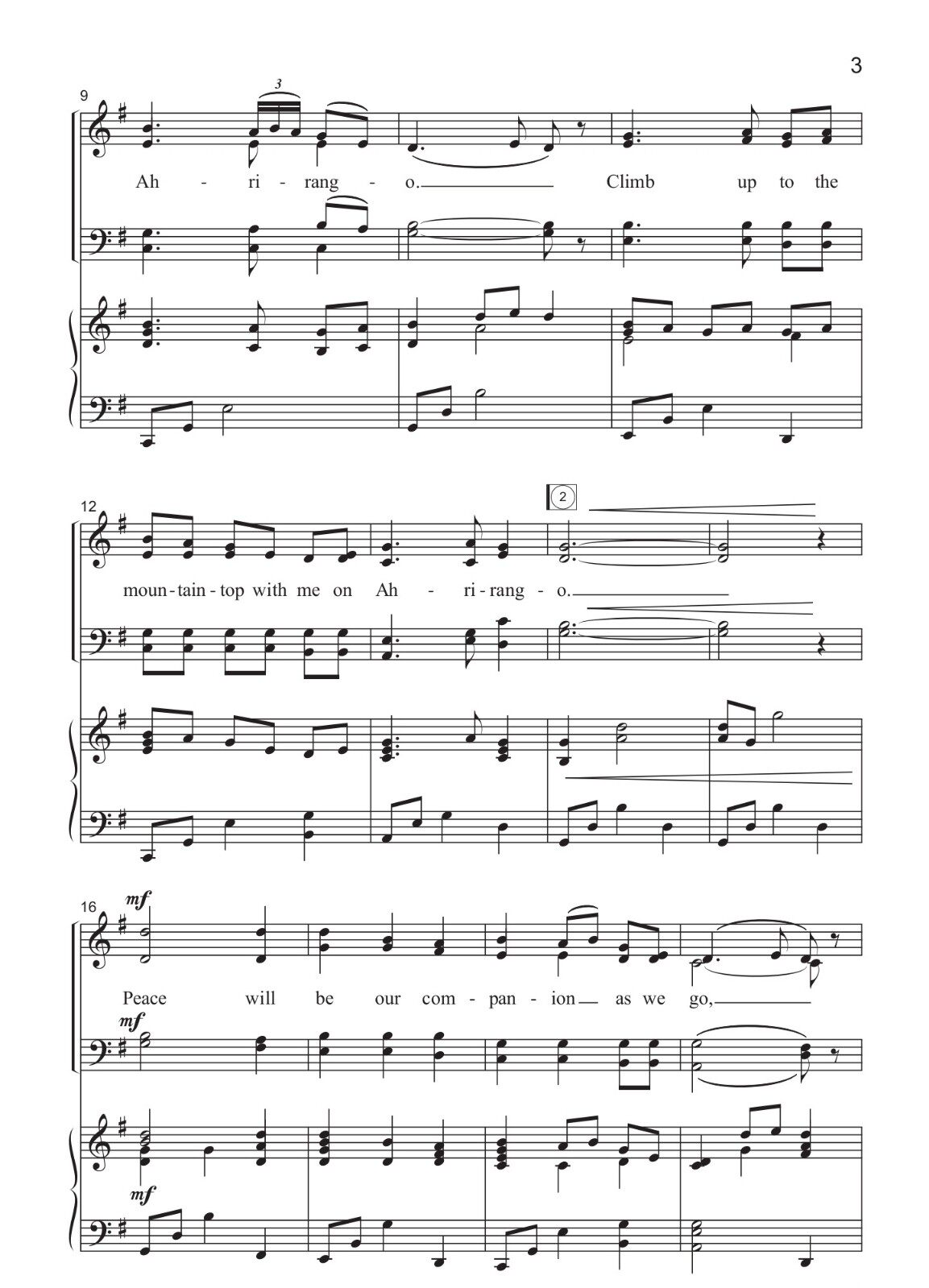 Arirang Ahrirang mixed four-part chorus SATB (vocal melody accompaniment score)
