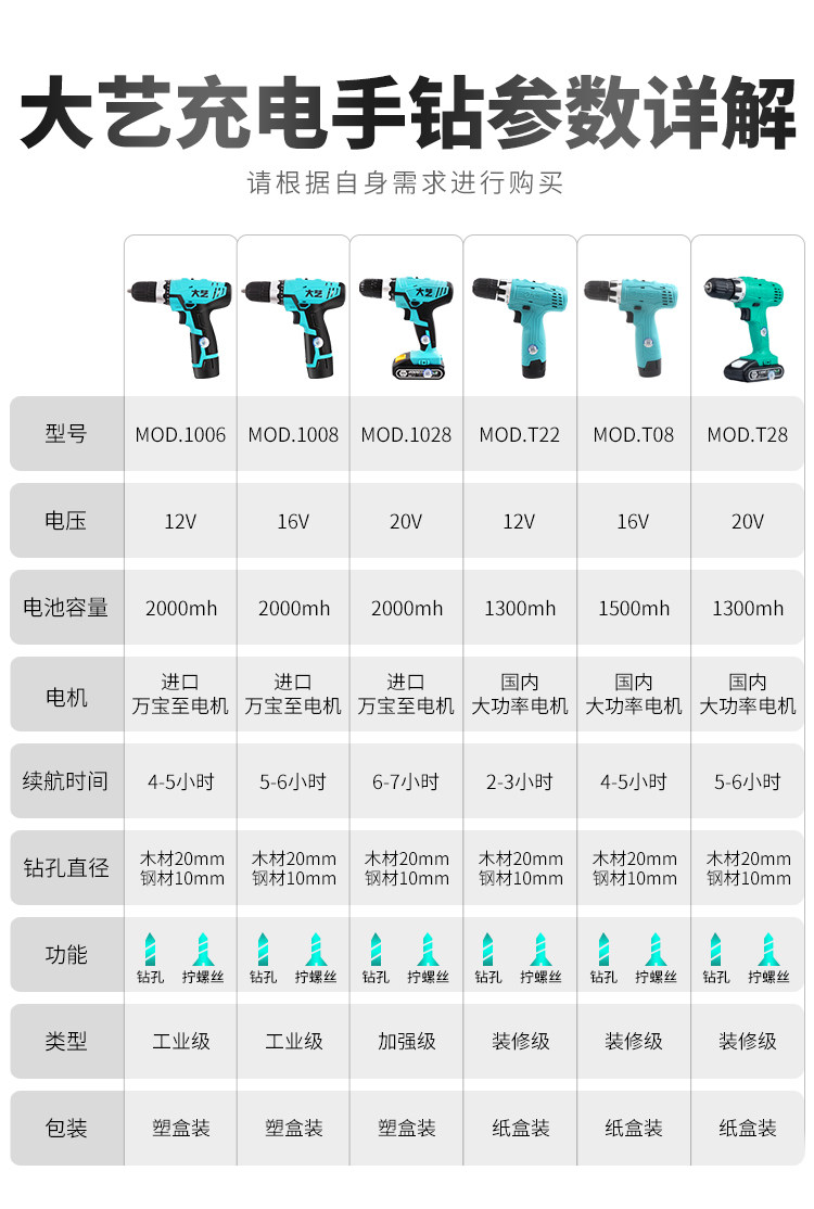 Types of electric drills: