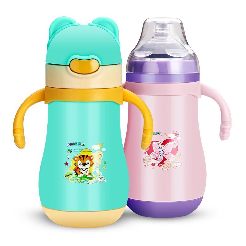 Children's insulated cup with straw dual-use 1-2-3-year-old anti-fall child Kettle Kindergarten Baby Water Cup Pacifier