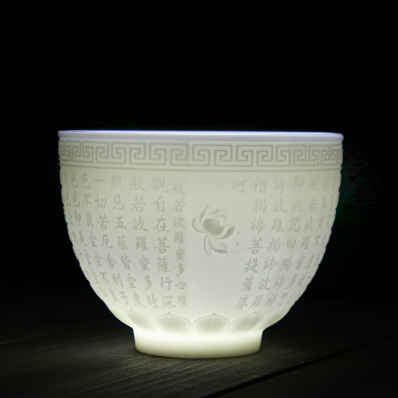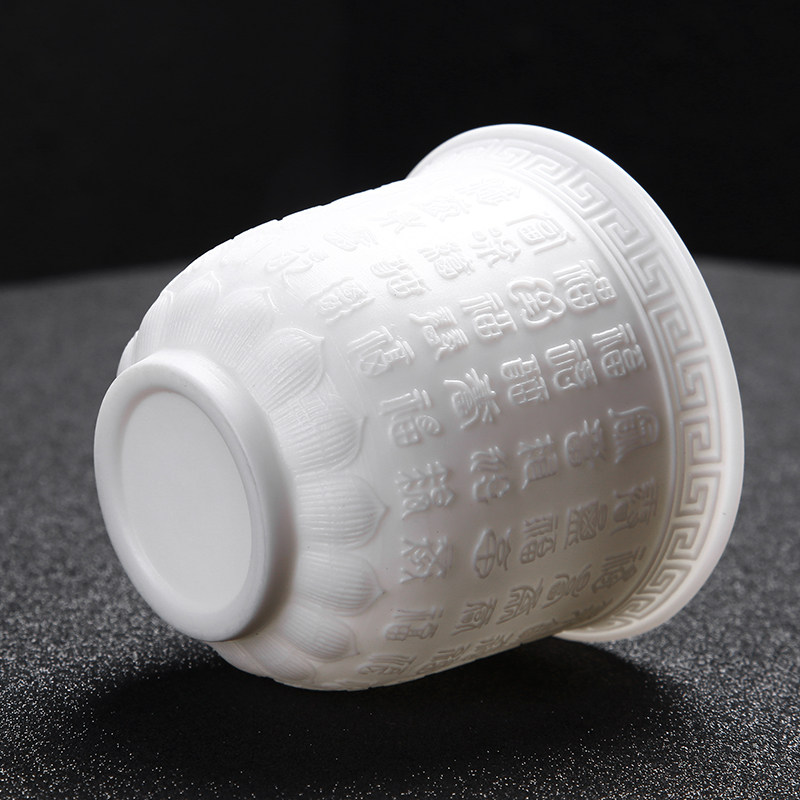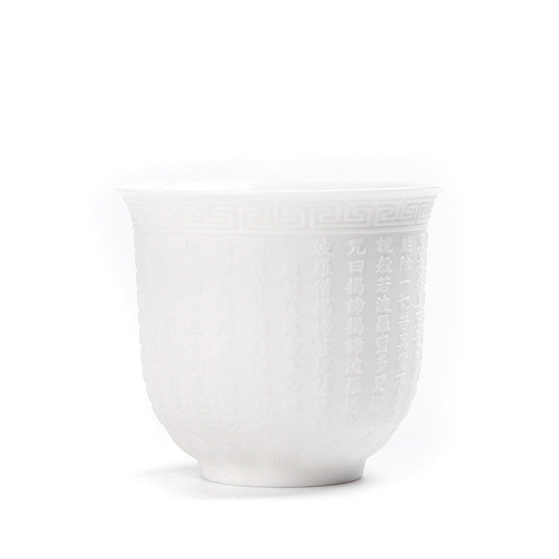 Dehua white porcelain tea cup handmade large mutton fat jade tea cup Heart Sutra cup home owner cup lettering personal cup