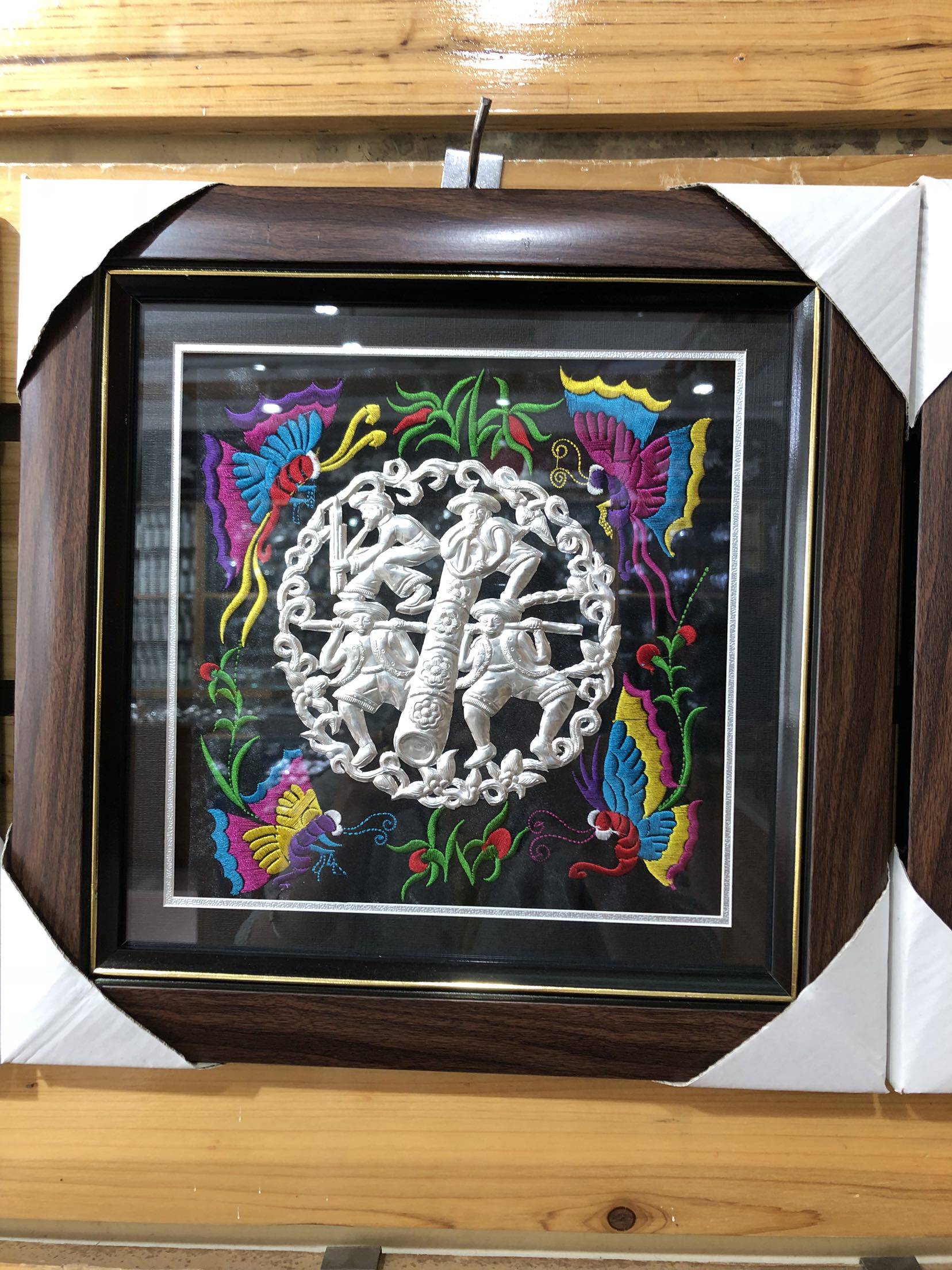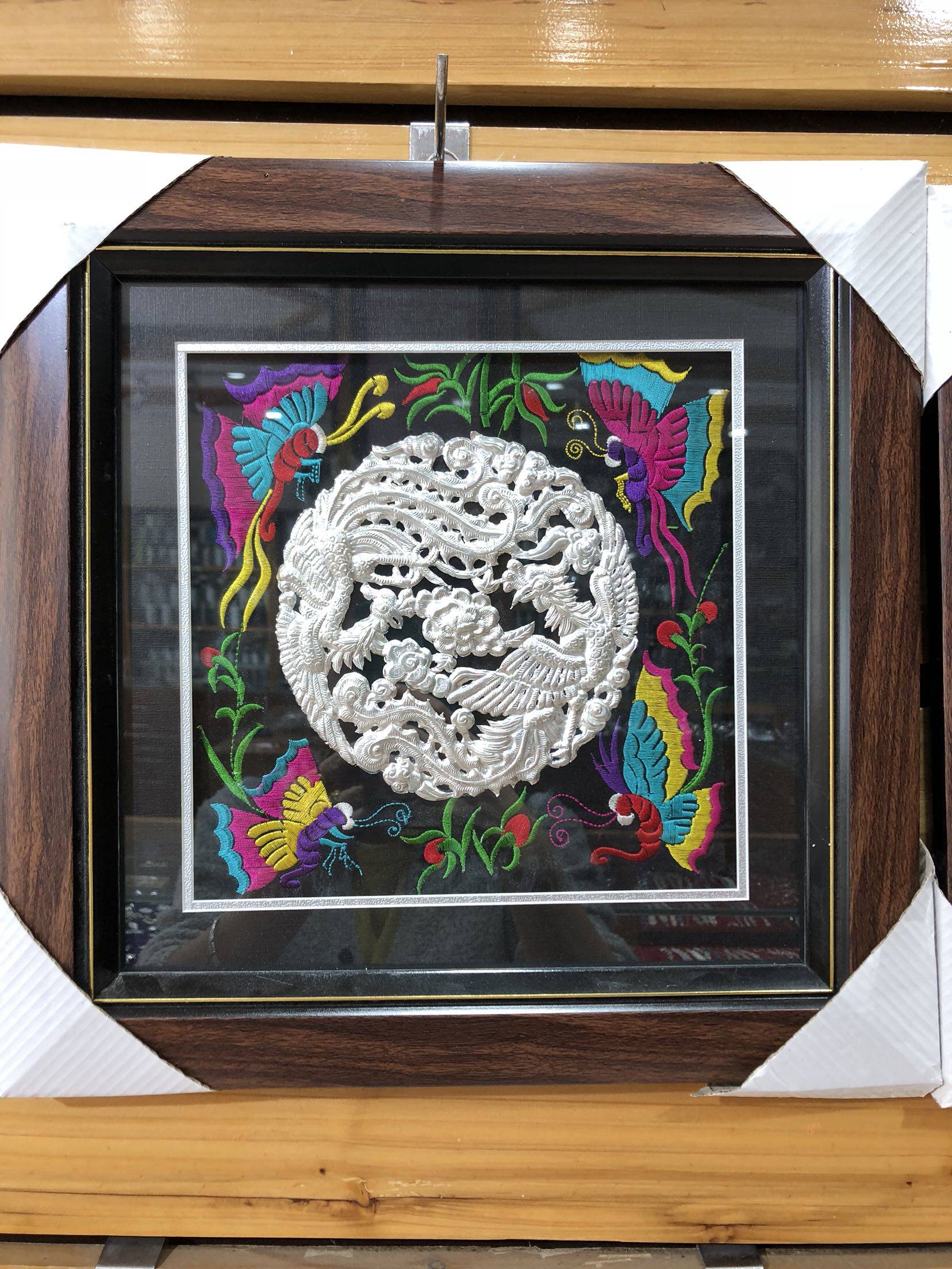 Customized Guizhou national characteristic silver ornament painting Pure handmade silver ornament embroidered photo frame 0