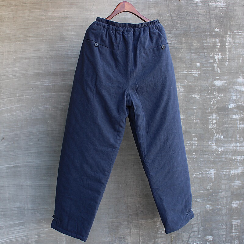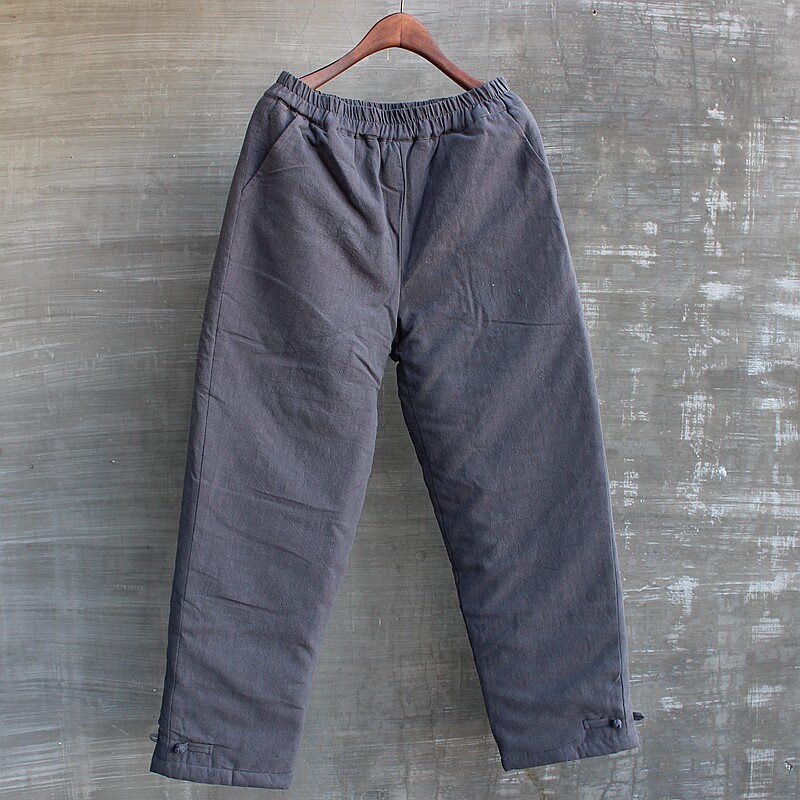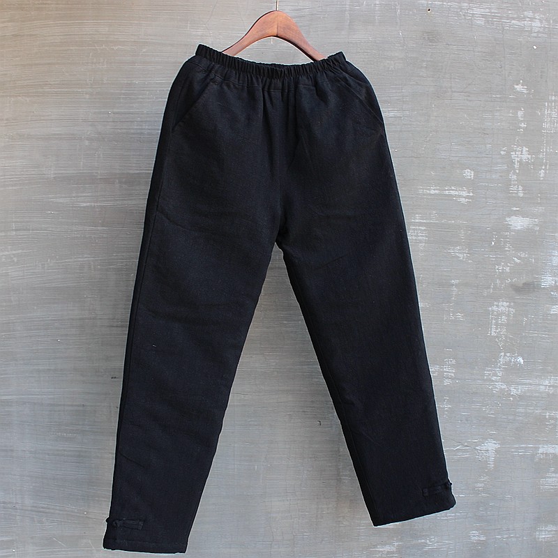 Men's casual cotton pants loose winter padded thickened outer wear large size Chinese style men's linen pants warm black