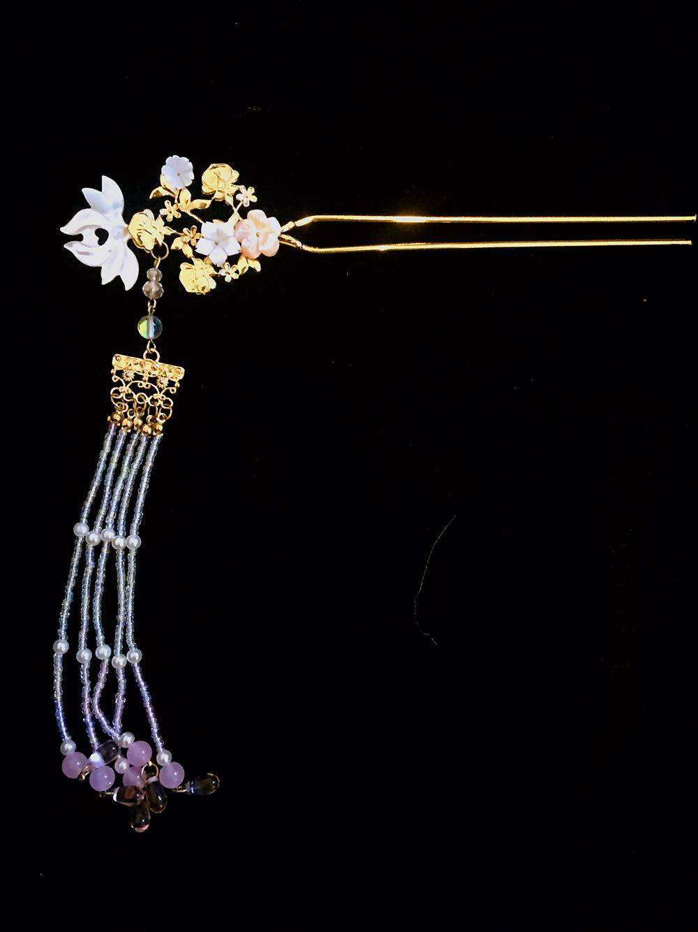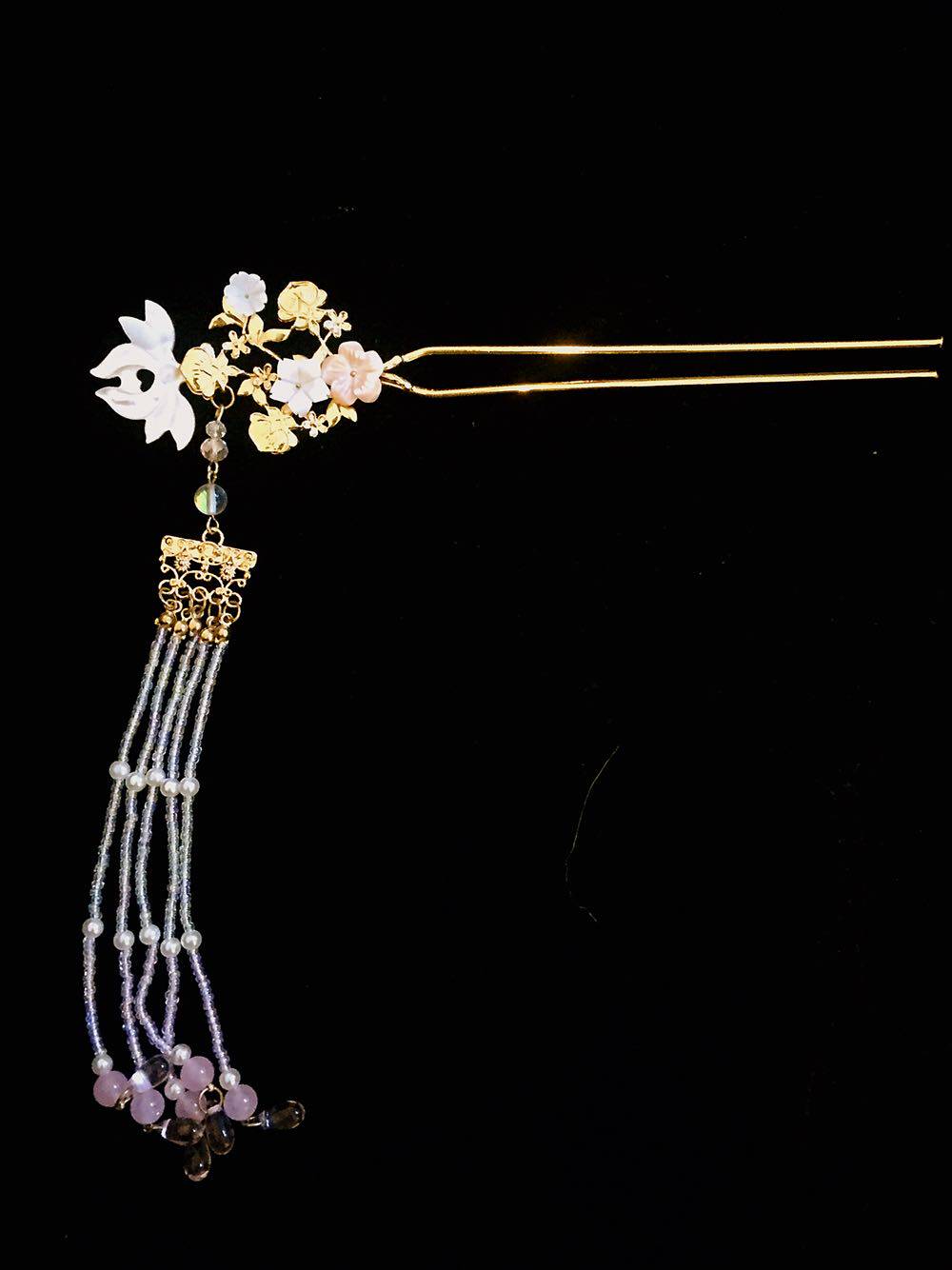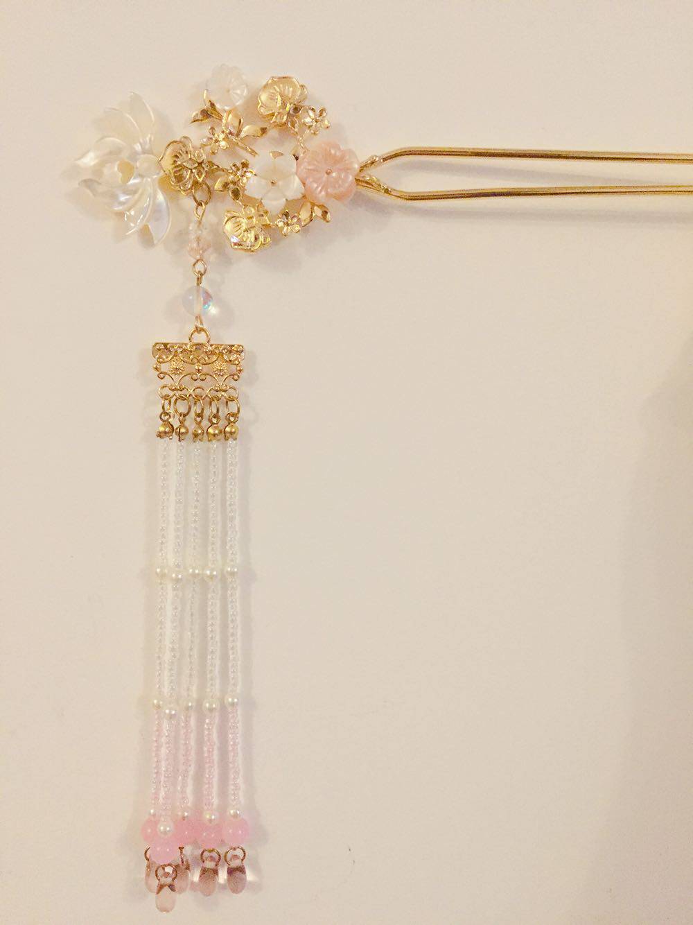 Hanfu ancient wind hair decoration rental (pink pearl streaming Su shells floral hairpin) Flow Su Step 1F0235