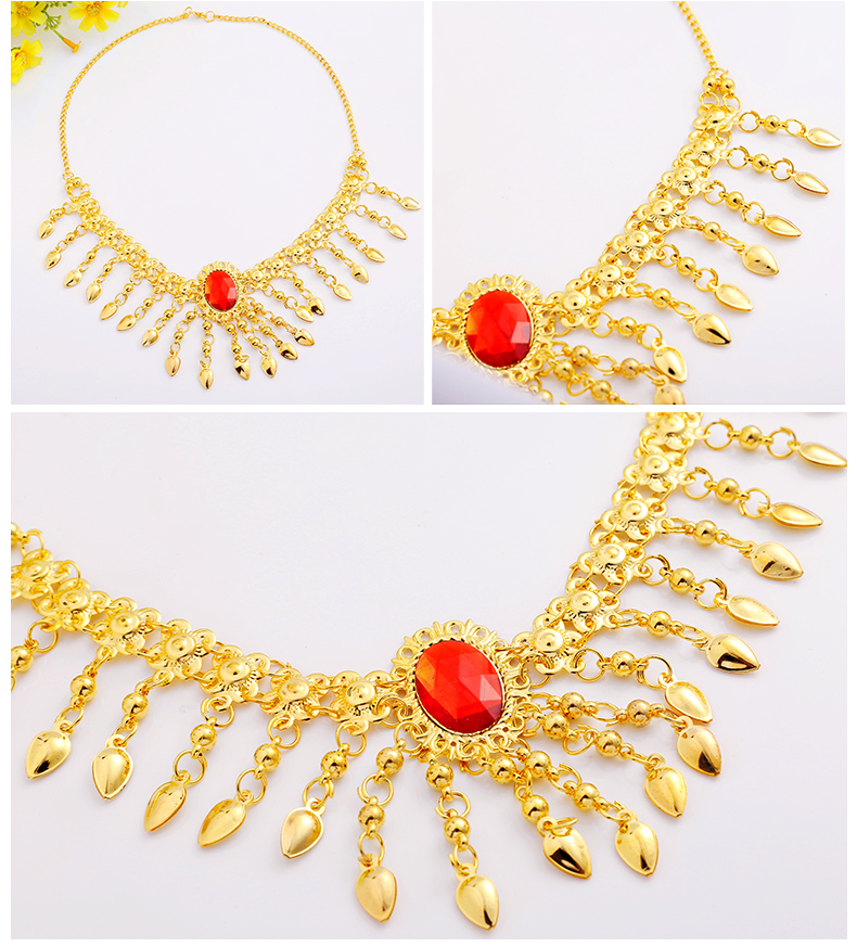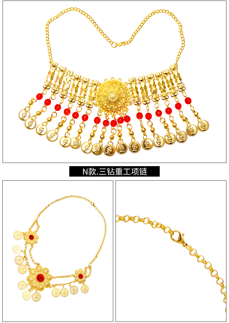 Indian dance show accessories headdress red bead necklace belly dance dance hanging coin treasure diamond neck chain necklace