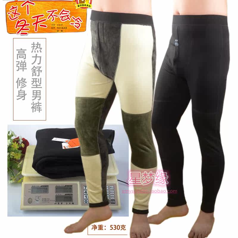 Men's autumn and winter widening, loose and thickening, velvet knee pads, waist pads, tight elastic warm cotton pants, bottoming one-piece pants