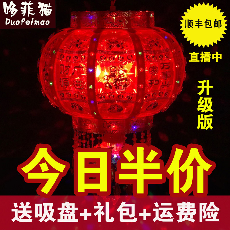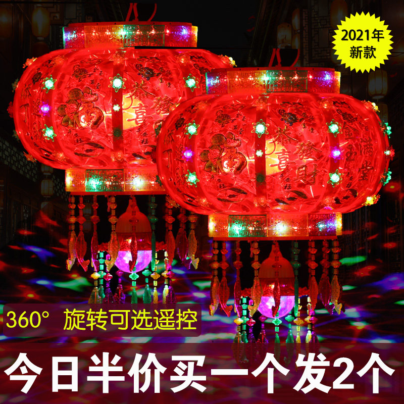 New Year gate hanging decoration Spring Festival Red Lantern lamp chandelier Chinese style balcony rotating colorful crystal led kerosene lamp