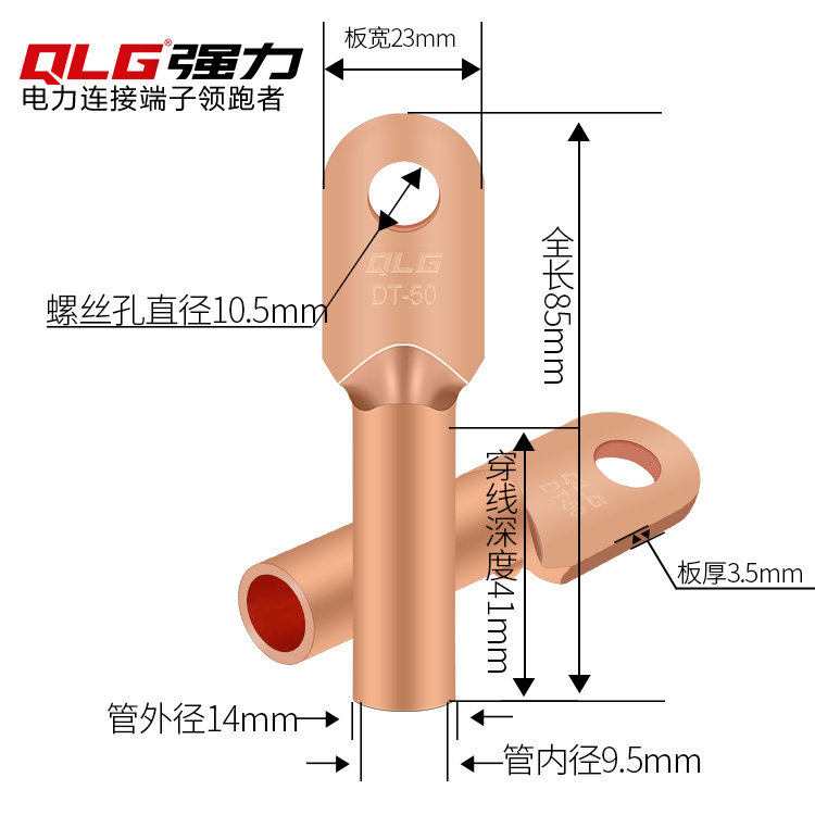 Copper nose copper joint DT50 square copper buckle line nose crimping wire ear cable head strong national standard 10 pieces