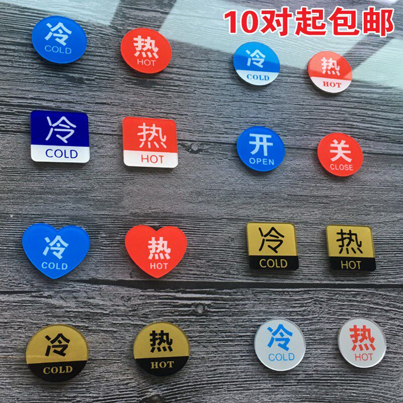 Hotel acrylic hot and cold trumpet stickers hot and cold water stickers logo indication faucet bathroom stickers switch trumpet