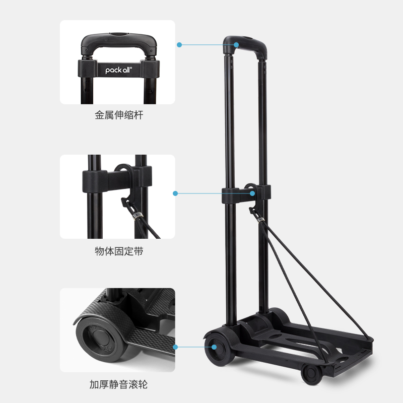 packall Portable folding household cart Pull cargo cart Carry luggage cart Elderly vegetable cart Flat plate