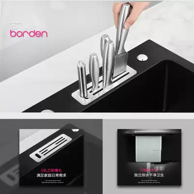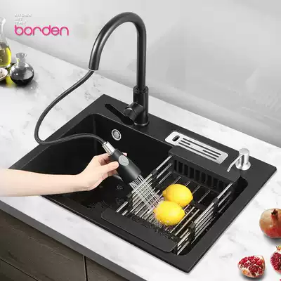 Italian sink washing basin single sink quartz stone large sink kitchen sink sink household vegetable basin Black