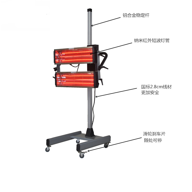 Car paint lamp nano infrared short wave baking lamp sheet metal spray paint handheld baking lamp double tube paint room heating lamp