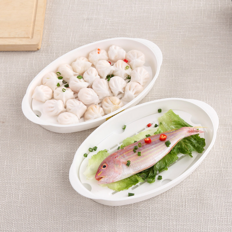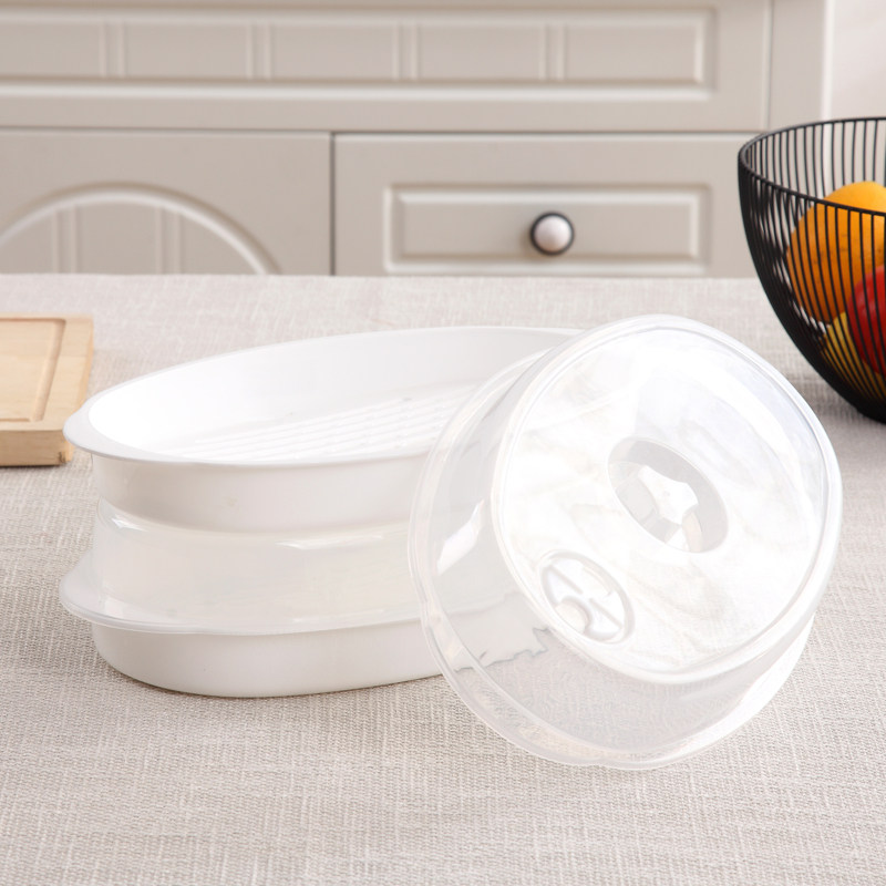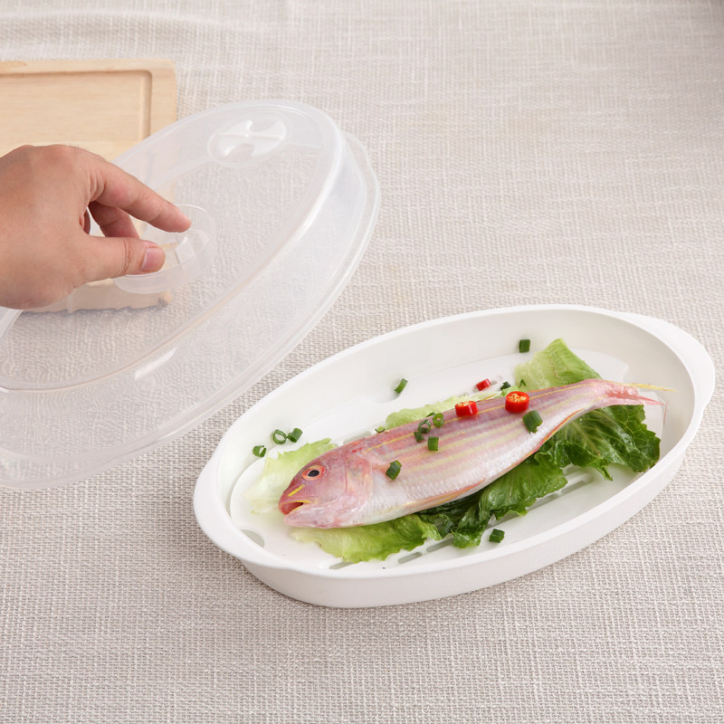 Microwave oven plate special fish plate heating high temperature plastic with lid rectangular steam dumpling disk heating box