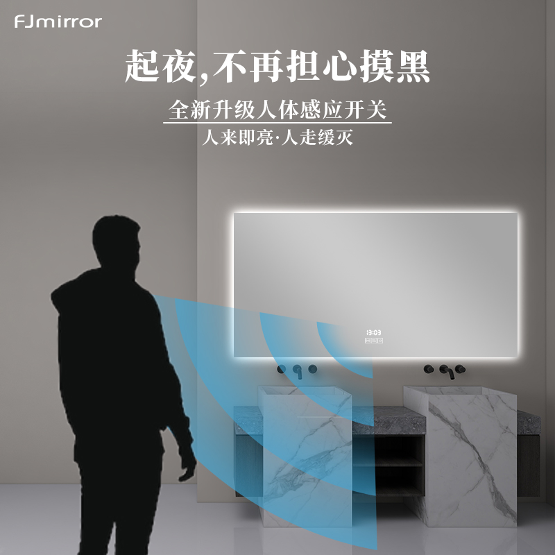 led bathroom mirror intelligent anti-fog mirror simple bathroom mirror wall-mounted household toilet bathroom mirror with light mirror