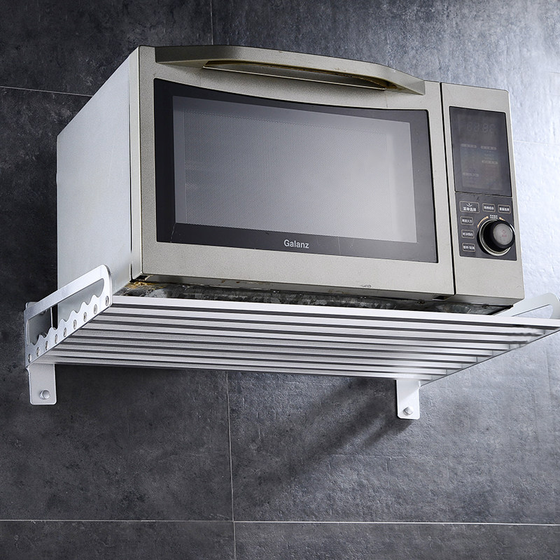 Perforated black space aluminum microwave oven rack Oven rack Kitchen supplies shelf Wall-mounted single layer