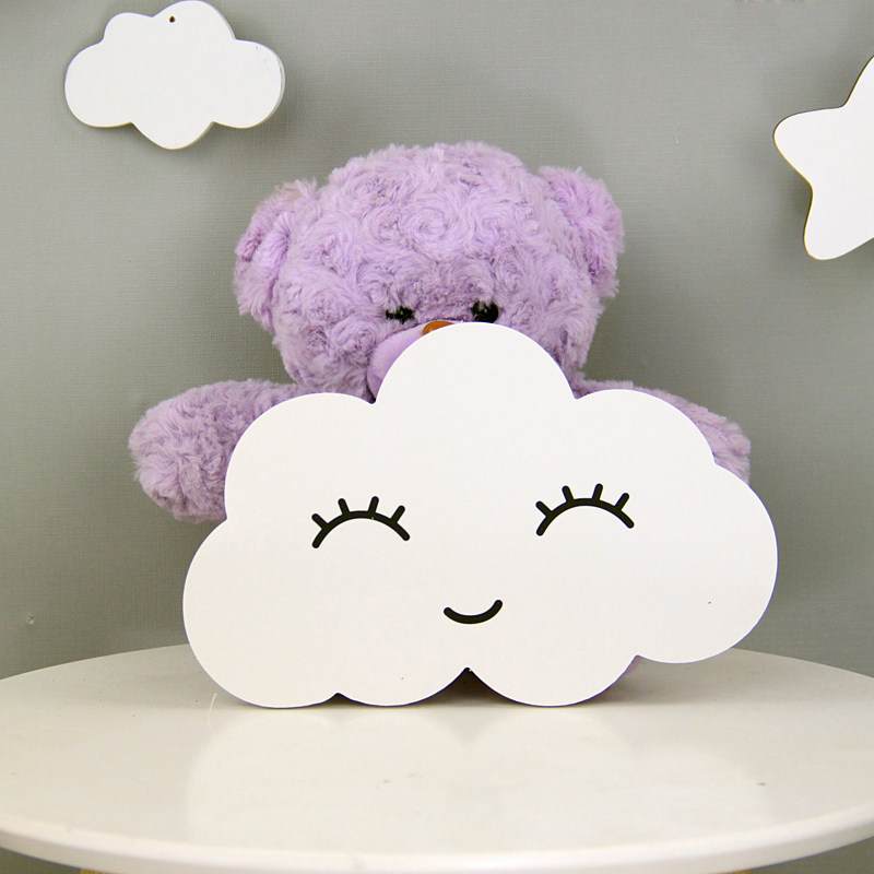 Mimeeye cloudwall with mummy eye cloud with blush wall stickly ball with sun yellow moon small round bottom cloud white small round bottom cloud pink small number round bottom cloud blue small round bottom cloud grey small