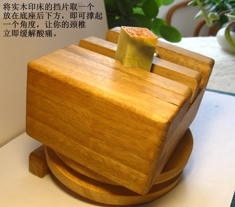 Rotatable solid wood print bed base mate 360 degrees turn barrier-free engraved seal tool holder single piece