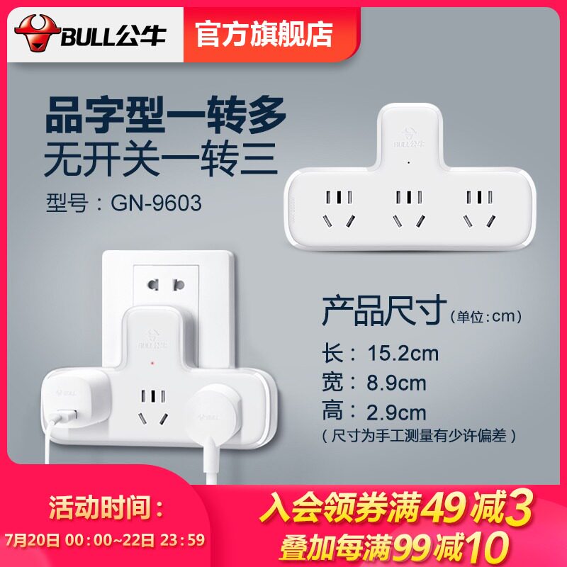 Bull socket conversion plug multi-function socket One-turn multi-socket converter Extension cable without wire product word