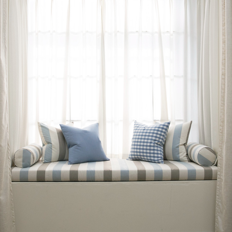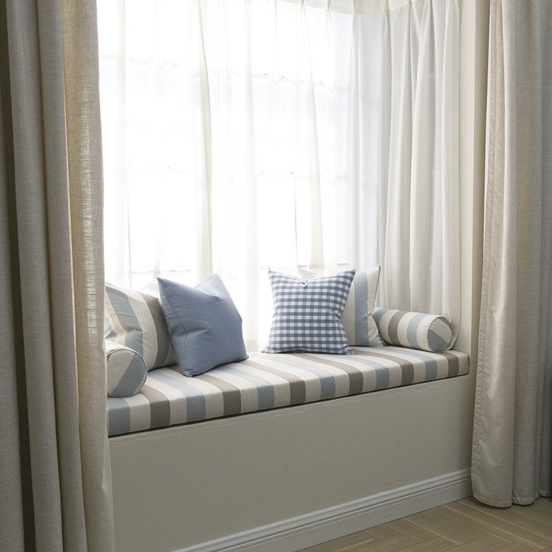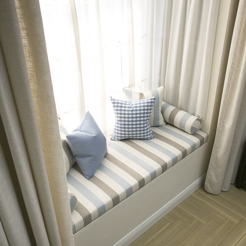 Custom European-style large stripe wide striped floating window padded with thickened high density sponge cushion set to make balcony window sill cushion