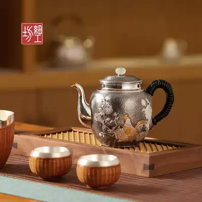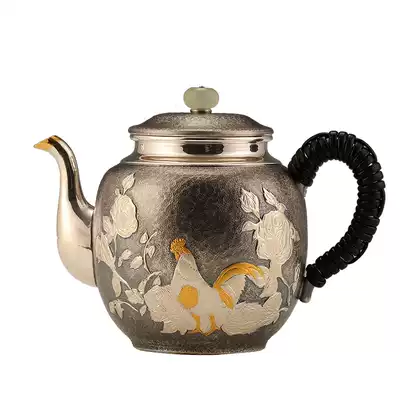 Fine workshop Japanese silver pot Sterling Silver 999 handmade Kung Fu tea pot Tea pot Jade button middot rooster urgent whisker