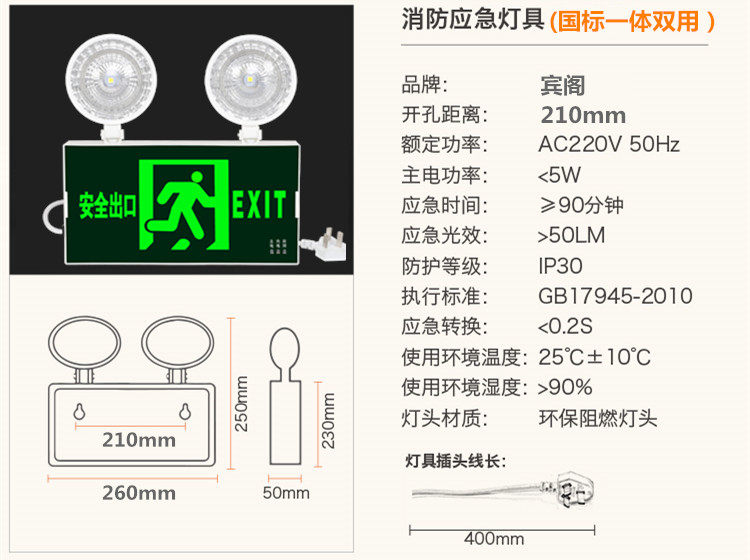 Special fire emergency lights home rechargeable LED exit signs double-headed lights evacuation lights