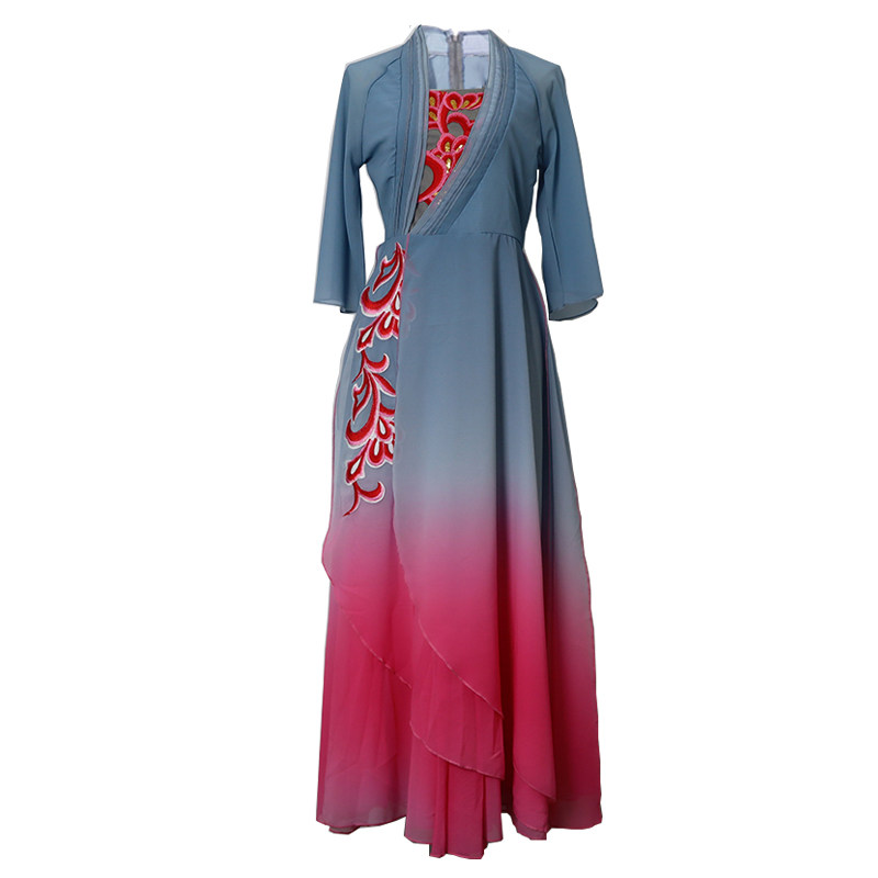 The new classical dance performance costume women's solo dance dot crimson lip same style performance costume elegant gradient art examination clothing customization