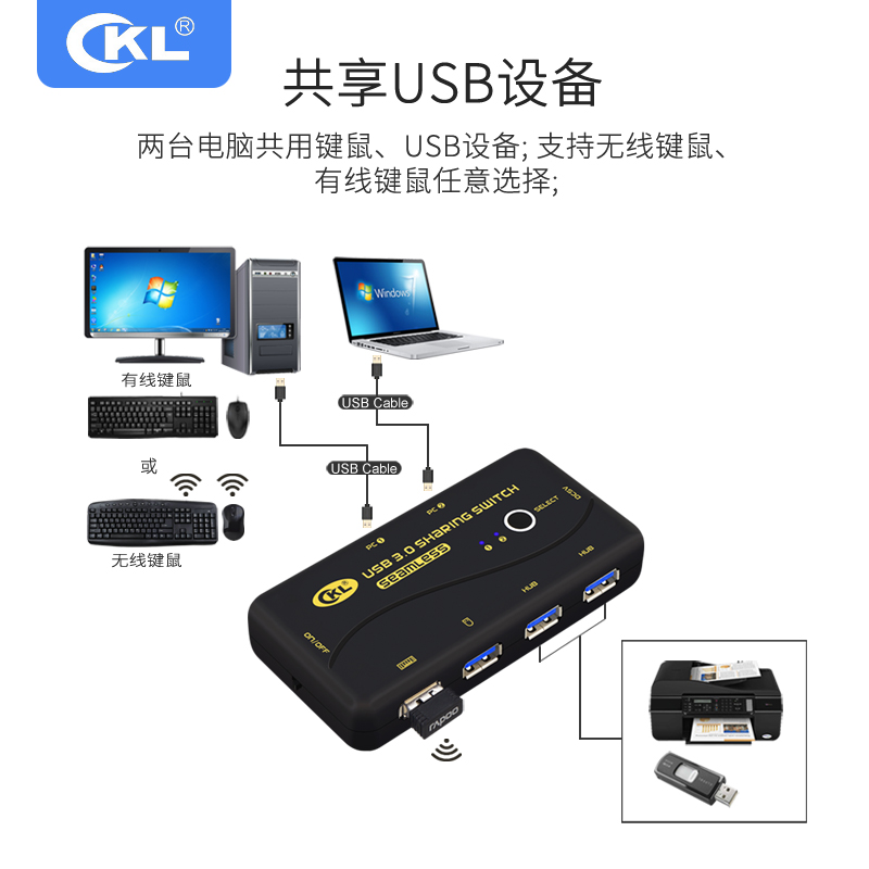 USB Print Machine Shareware 2 In 4 Out of Switch 10% Drag Two Conversion USB Computer Extension Line CKL-24U3