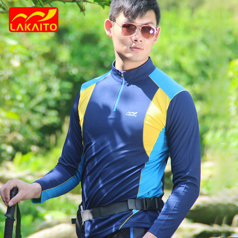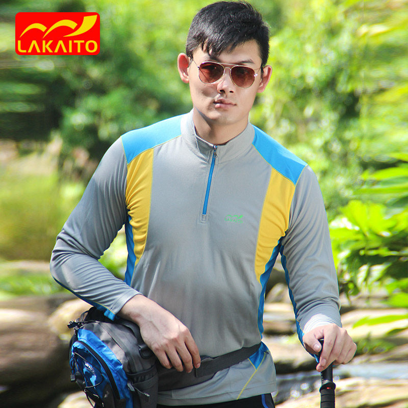 Speed Dry T-shirt Female male couple with long sleeves Quick drying collar Hiking Sports Climbing and Breathable Shirts LAKAITO Outdoor