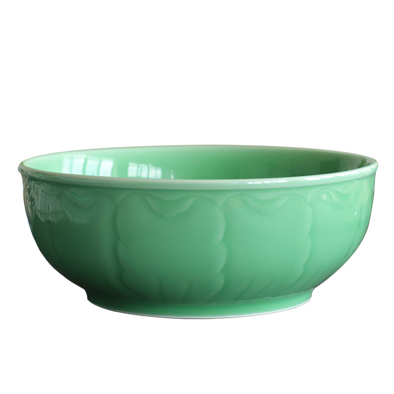 Ceramic household large soup bowl Longquan celadon 10-inch large peony bowl to increase the bowl of public sauerkraut fish bowl large capacity