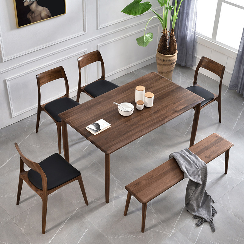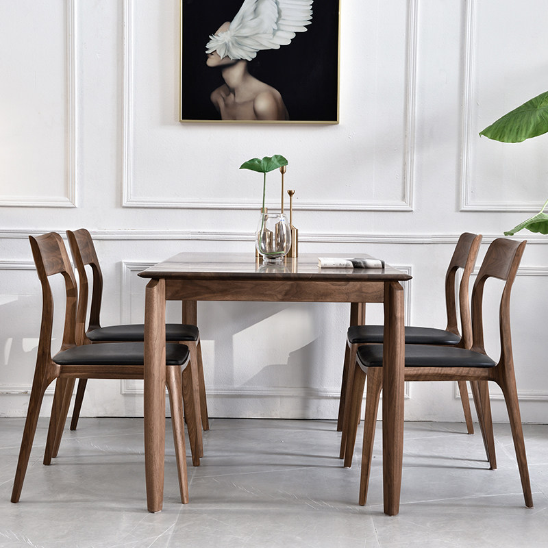 Sanchen black walnut all solid wood dining table and chair combination Nordic modern small-sized household dining room dining table rectangular