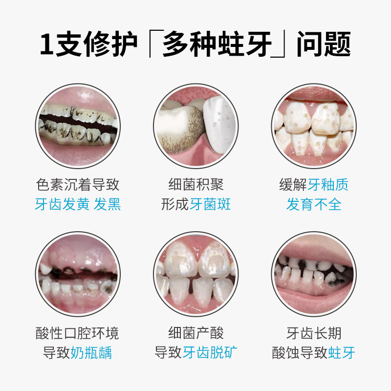 Aoler V Children's Dental Care Agent 0-6-12 years of age students over the age of fluoride can swallow toothless black yellow bottle caries white