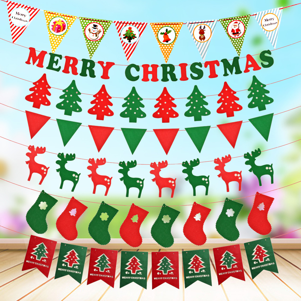 Christmas decorations Pull flower Non woven Felt Christmas pull flag Shopping mall shop hanging flag Hanging flag Christmas supplies