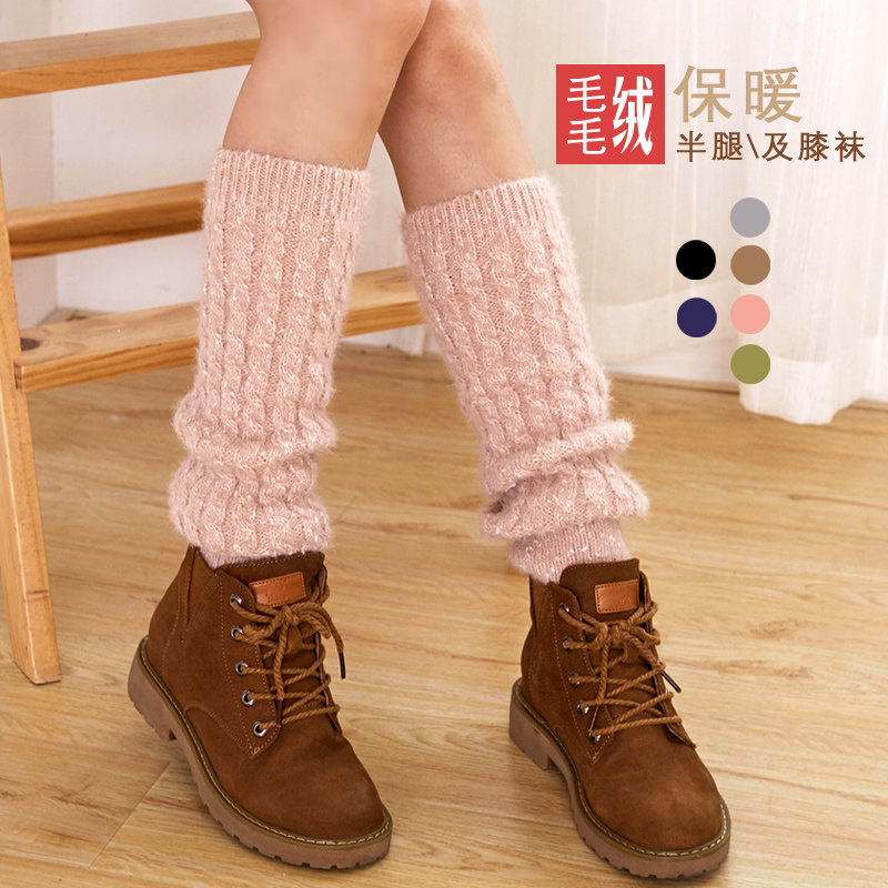 Autumn and winter leg socks female Korean version of thick warm wool boot cover hairy half leg calf knee socks bubble socks