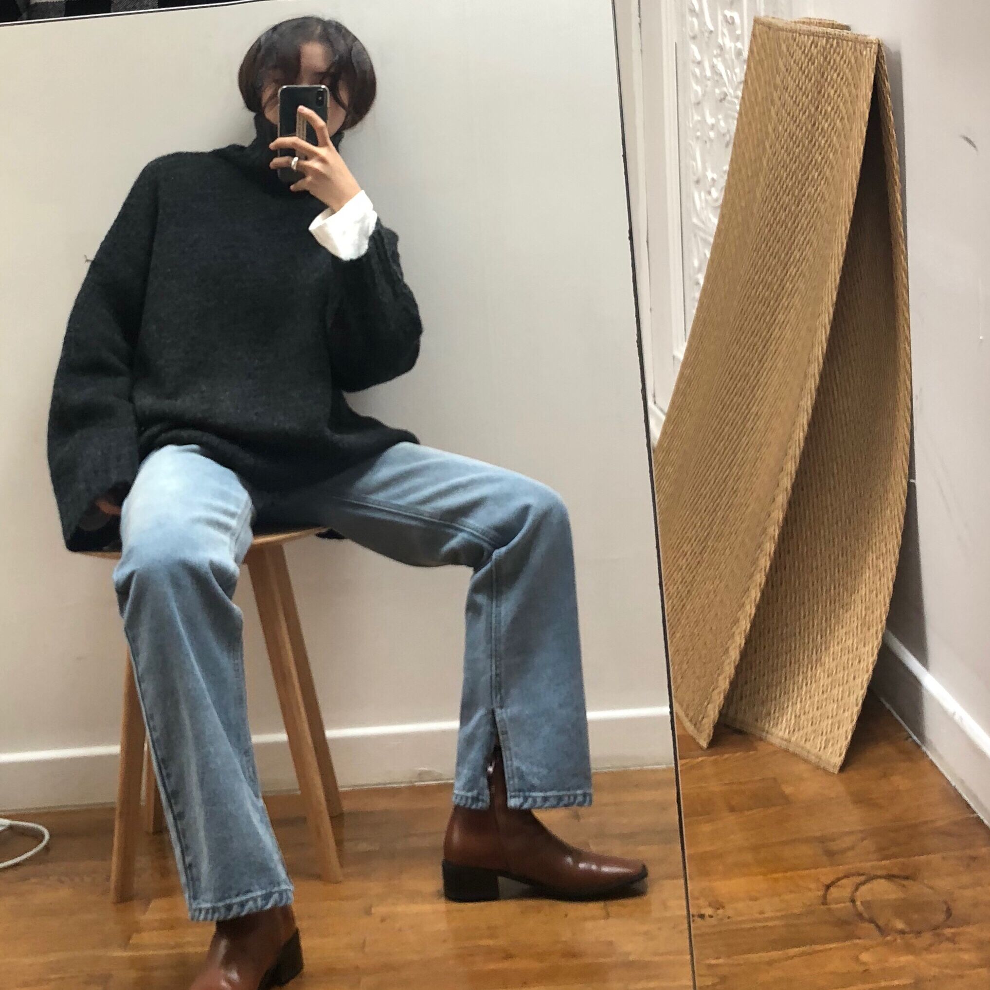 Lonslan Autumn - Winter - Autumn - Winter side open fork with lean jeans wide - loose pants female straight tube high