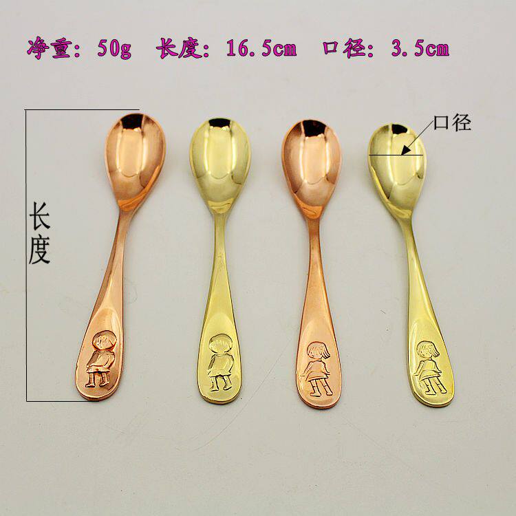 Pure copper tableware hotel supplies kitchen utensils copper brass boy girl soup spoon rice spoon spoon western food spoon