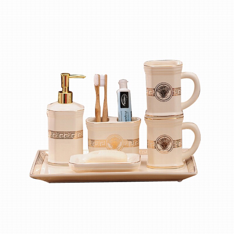 Ceramic bathroom five-piece set bathroom toiletries toothbrush cup toothbrush holder mouthwash cup set new home bathroom products
