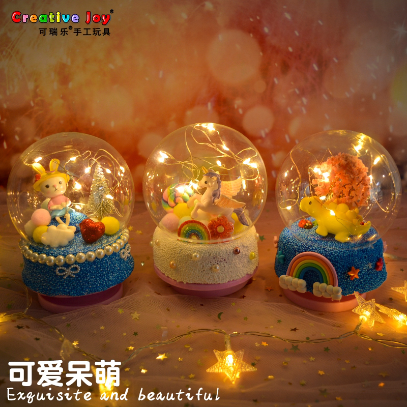 Children's birthday present DIY music box luminous water crystal ball handmade clay to make micro-landscape octasonic box Large-Taobao