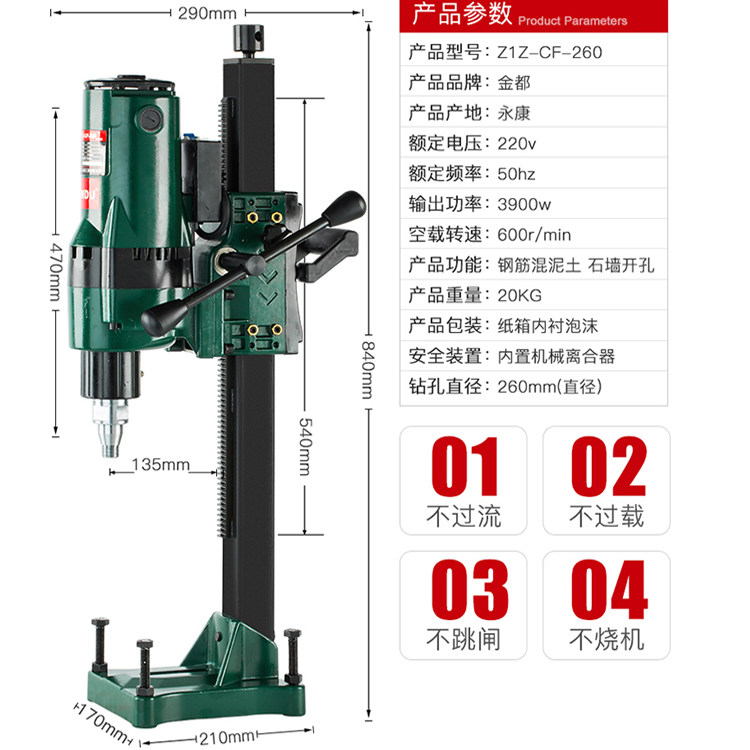 Jindu water drilling rig drilling machine engineering drilling rig high-power bench drilling machine vertical rhinestone concrete coring belt bracket