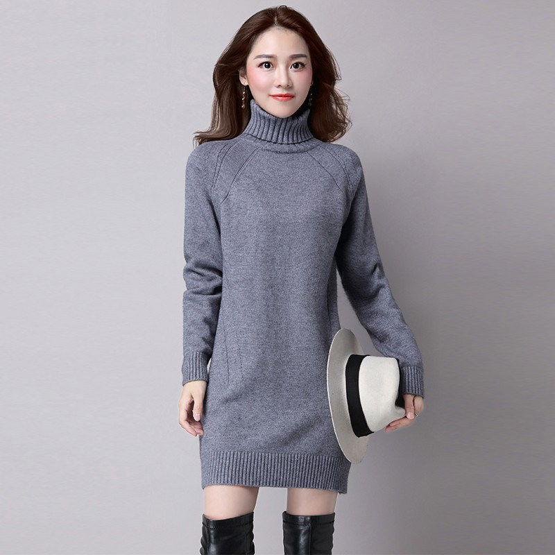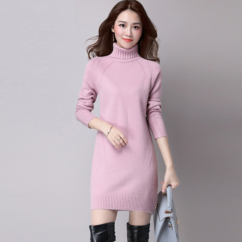 Plush sweater women's thickened winter 2022 autumn and winter new Korean version long version loose half turtleneck knitted bottoming shirt