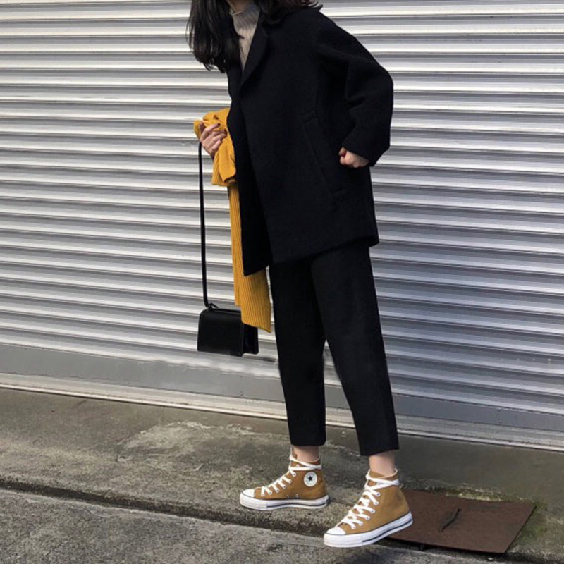 Black Small Straight Drum Pants Woman Spring Autumn 2021 New Korean Version High Waist Loose With Slim Casual 90% Suit Smoke Pipe Pants