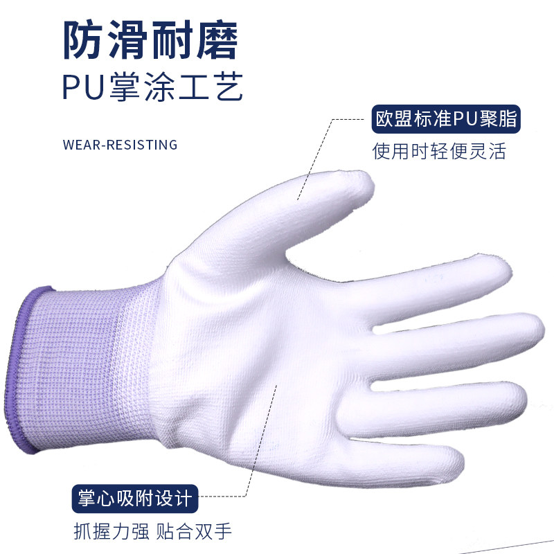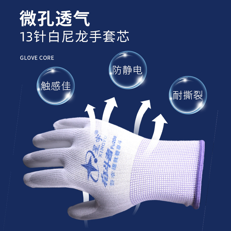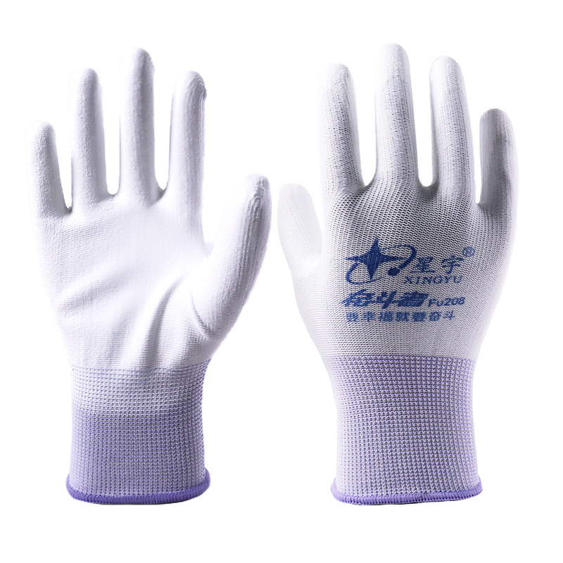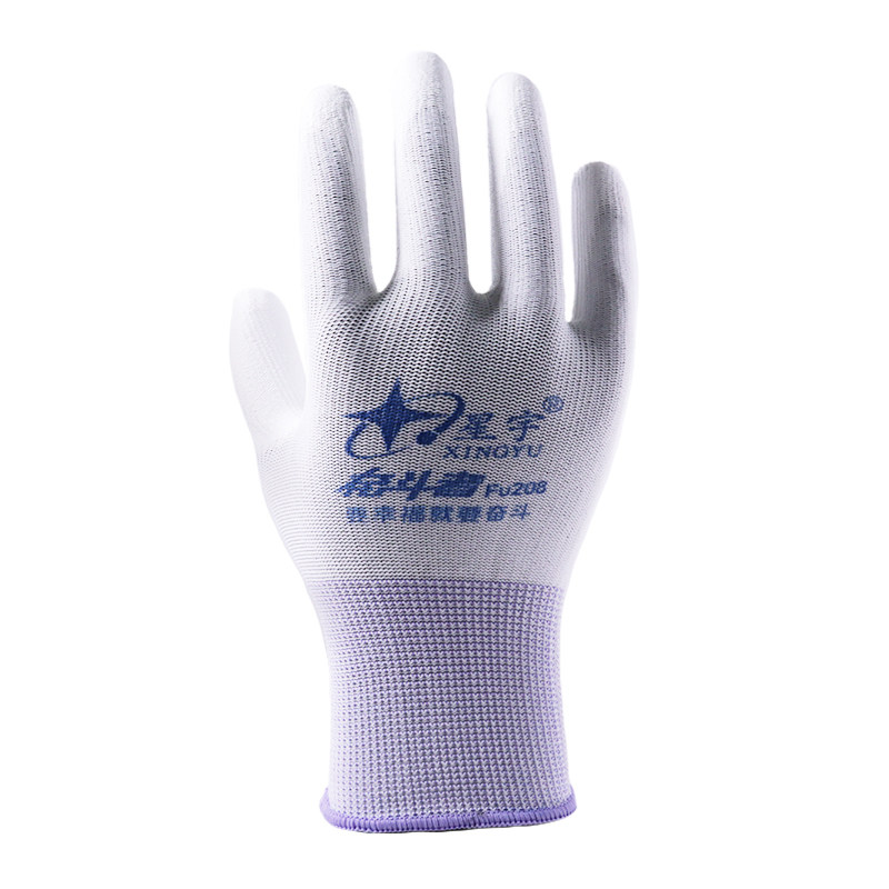 Xingyu nylon pu gloves painted finger female thirteen needle labor insurance wear-resistant anti-static PU gloves thin section PU508 same style