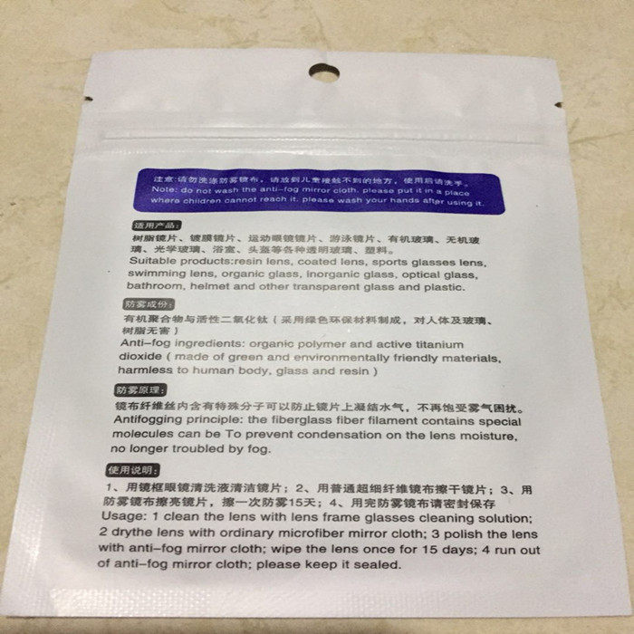 Anti-fog glasses cloth in the air
