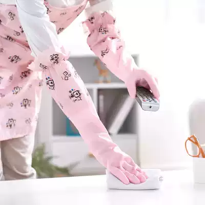 Plus velvet long sleeve latex gloves cold-proof warm laundry washing dishes housework cleaning moppers waterproof non-slip rubber gloves