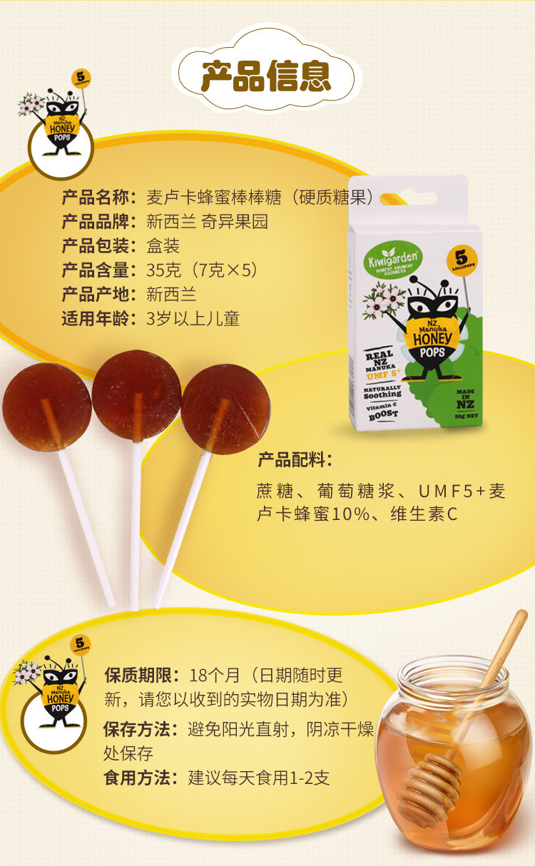 New Zealand imported Kiwi fruit garden Manuka honey lollipop containing vitamin C children's baby snacks auxiliary food candy