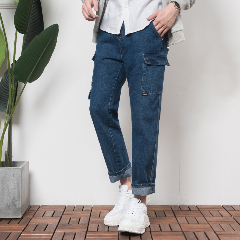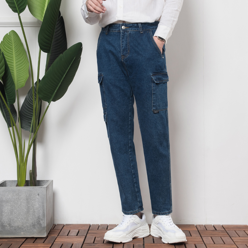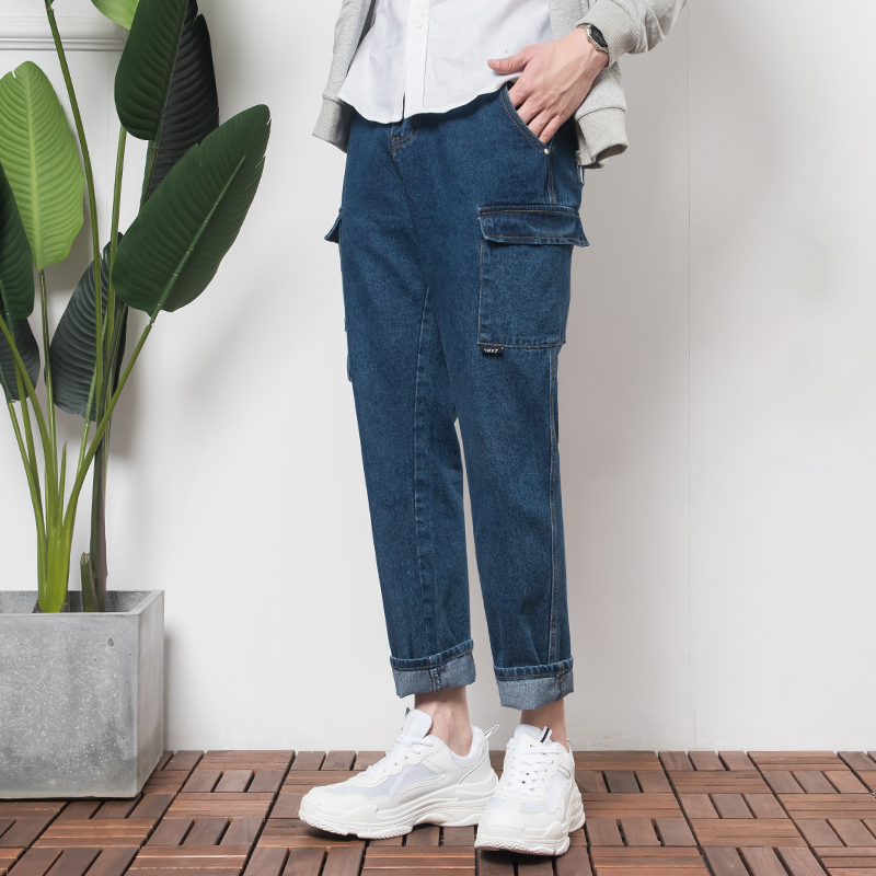 (time-limited clearing house) Summer men's wide leg loose tooling jeans straight cylinder Han Wind men's trend