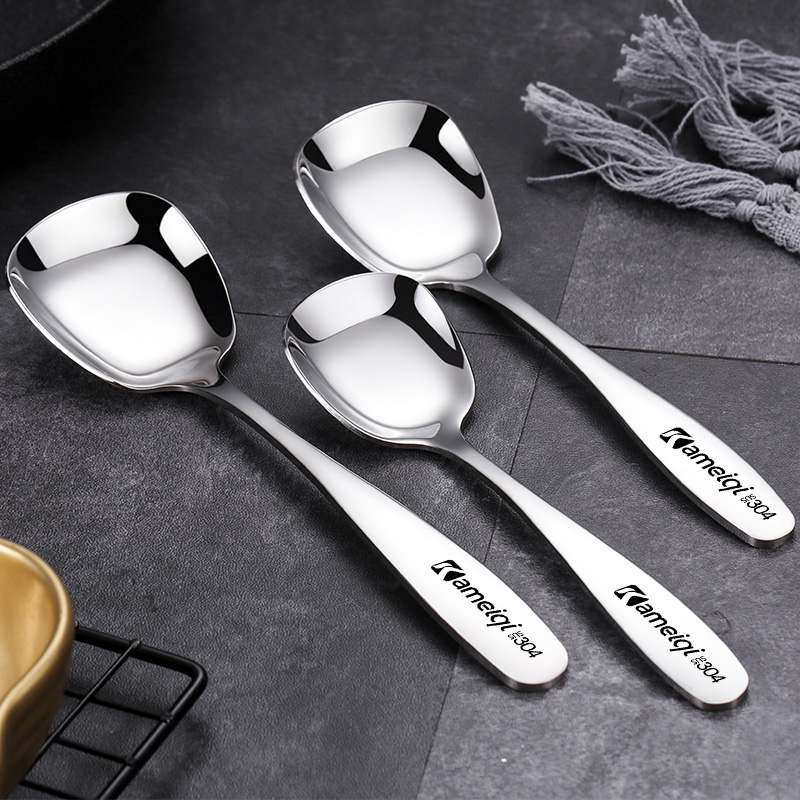 Germany Kameiqi flat spoon 304 stainless steel deepened spoon Household large dining spoon Long handle spoon