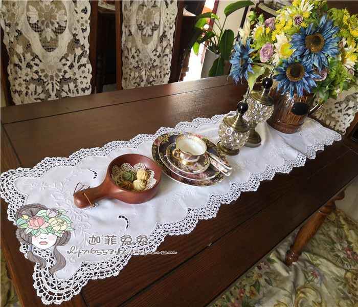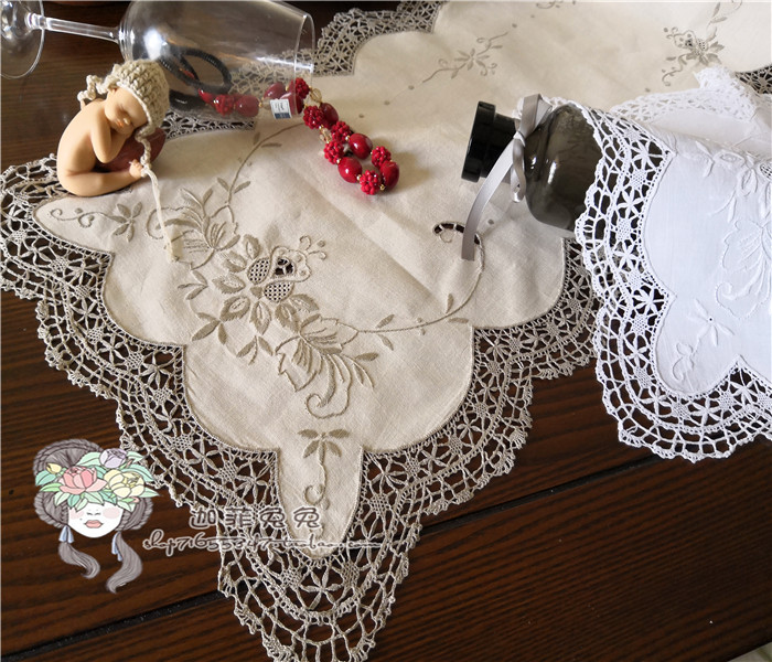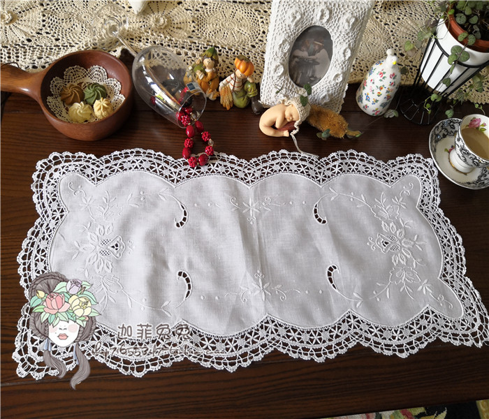 Delicate Artisanal Foreign Trade Export British Original Single Wide Stick Cotton Linen Handmade Embroidered Table Flag Decorated Cover Towels Multi-in