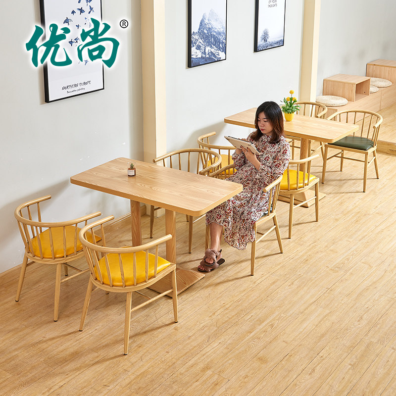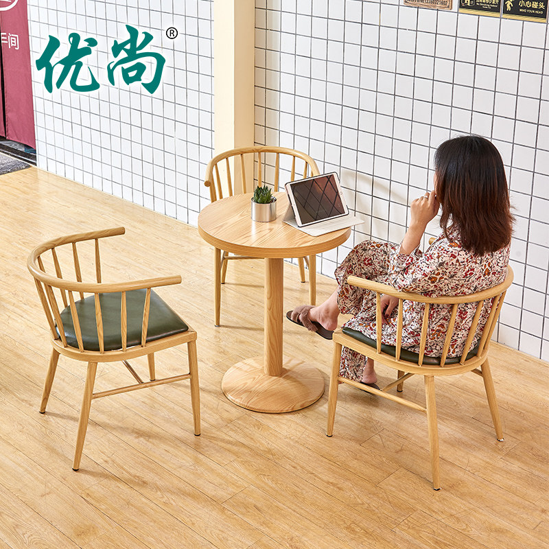 Small Halal New Milk Tea Shop Iron Art Princess Chair Coffee Room Sweet shop original wood color table and chairs Cold Drinking shop small eating shop table and chairs