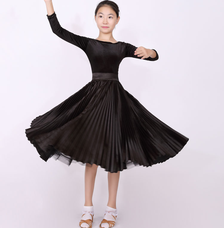 Black Pool Girls Morden Dance Costumes Autumn winter Children Moden Dance Out of service Velvet Long Sleeves Practice Suit 15