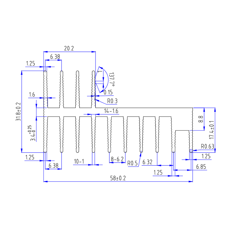 Electronic radiators 50100 * 58 * 31 8MM double teeth F-shaped aluminium heat dissipation block thermally conductive sheet aluminium extrusion material fins